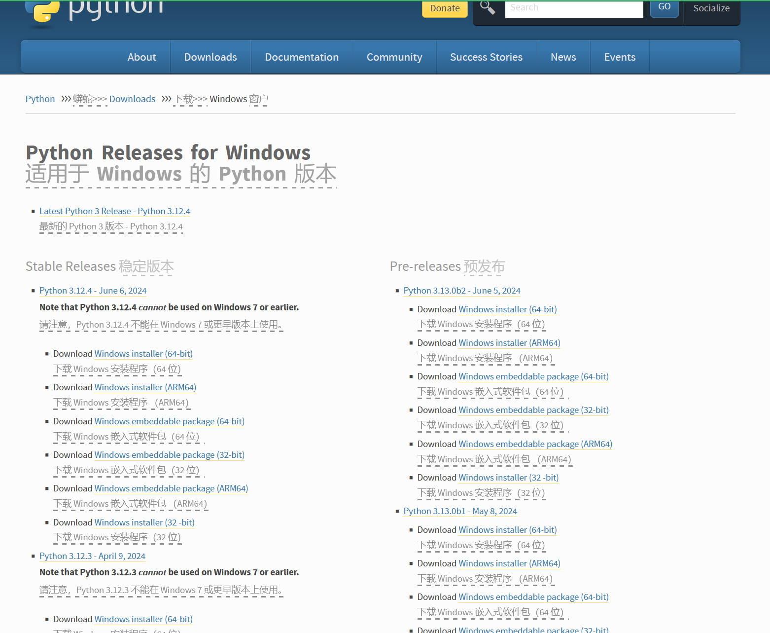 请注意,Python 3.9+ 不能在 Windows 7 或更早版本上使用。