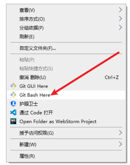 4.复制好地址之后 去刚才创建的文件夹中 右键选择Git Bash Here