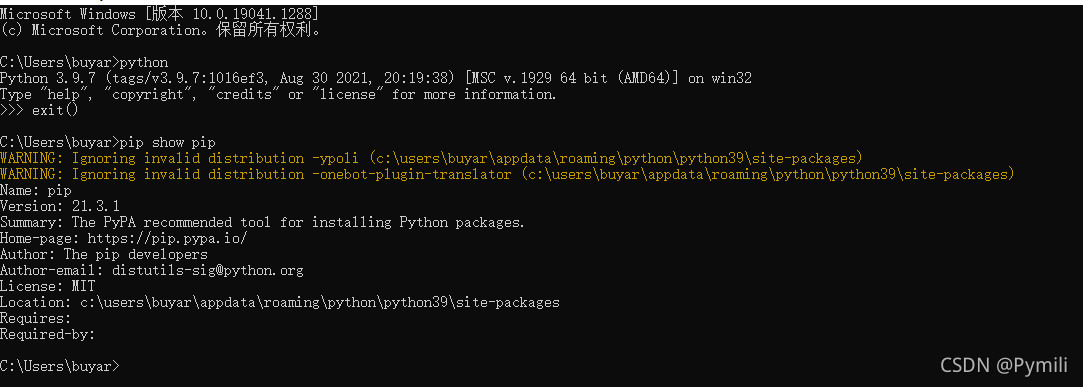 再在终端输入 pip show pip 查看pip是否安装成功即版本