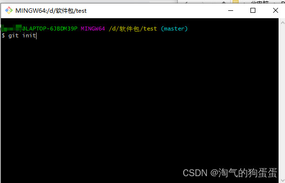 5.点进去之后会显示一个黑窗口 在此输入git init 用于初始化项目